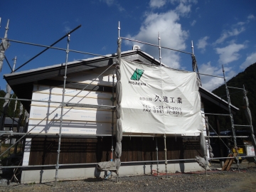 外観は腰板壁、付け柱、木格子を付けて古民家風に仕上げていきます。