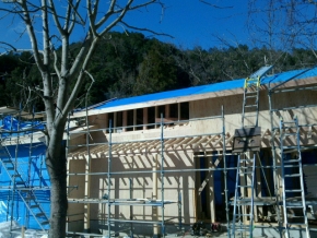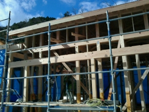 木造軸組工法に面材耐力壁と筋交いをプラス。